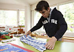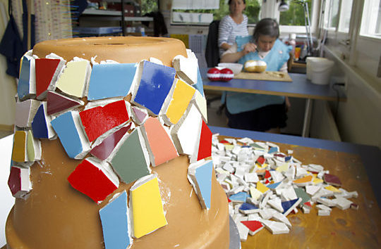Unserer Beschäftigungsgruppe steht in der Dependance an der Zürichbergstrasse 139 eine Attikawohnung zur Verfügung und bei schönem Wetter eine geräumige Sonnenterrasse mit Bergsicht. Die 8 jungen Menschen und 3 Betreuungspersonen sind kreativ, und auch produktiv. Hier wird gemalt, gewoben, gefilzt und genäht, gekleistert und gekocht. Ein vielseitiges Angebot kommt den zum Teil sehr aktiven Menschen entgegen. Im Windlicht finden älteren Bewohnerinnen und Bewohner einen Ort, an dem sie schöpferisch tätig sein können. In einer offenen, gemütlichen Atmosphäre sollen sie nach ihren Bedürfnissen und Möglichkeiten erleben, dass sie ihren Teil zur Gemeinschaft, der sie angehören, beitragen können. Mit Sorgfalt und Hingabe gestalten sie kunstgewerbliche Objekte, die unser Haus schmücken, oder an Märkten verkauft werden.